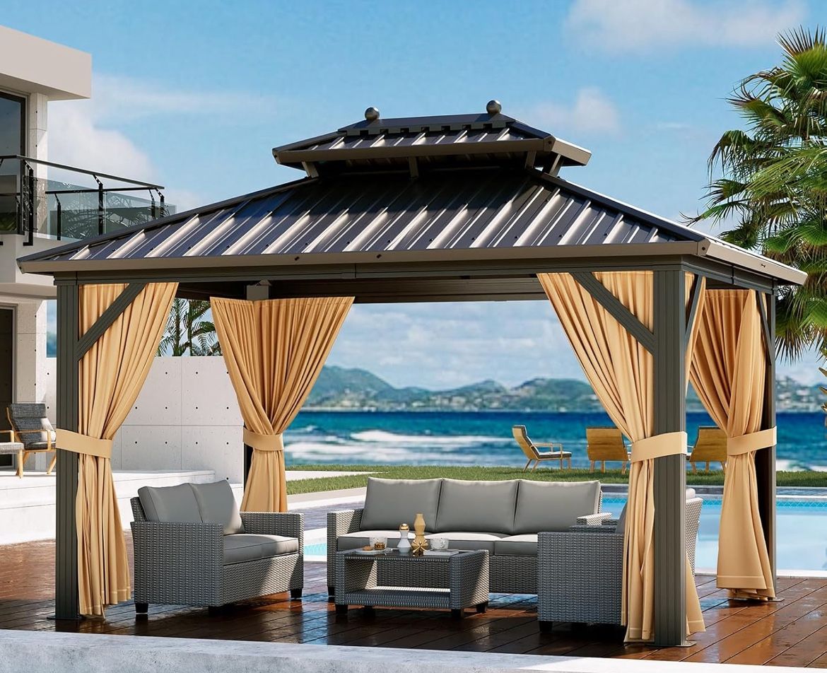 EROMMY 10X12 Hardtop Grill Gazebo With Netting And Sides