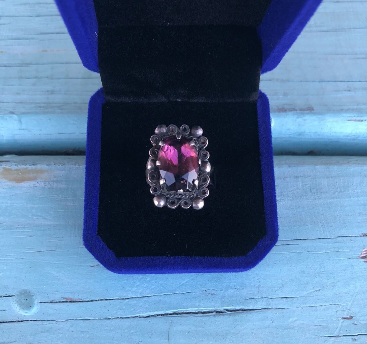 Beautiful Vintage Sterling Silver .925 Amethyst Statement Ring Size 4.5-Mexico