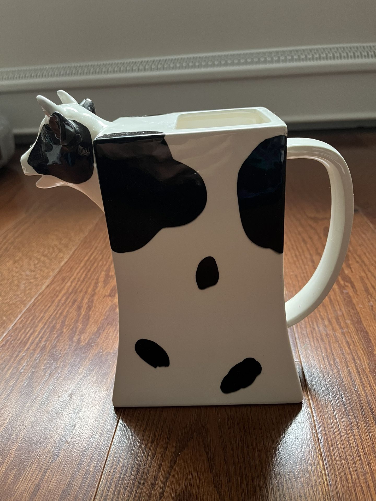 Vintage Dept. 56 Cow, Now Tea Pot (Milk Pitcher) Black And White Spots Approximately 8” Tall