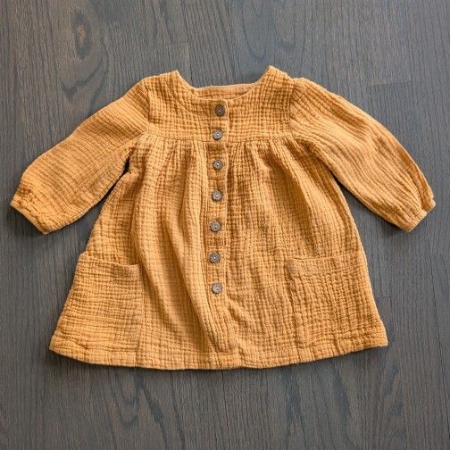 Baby Casual Pocket Design Long-Sleeve Dress, Yellow, 12-18 Months