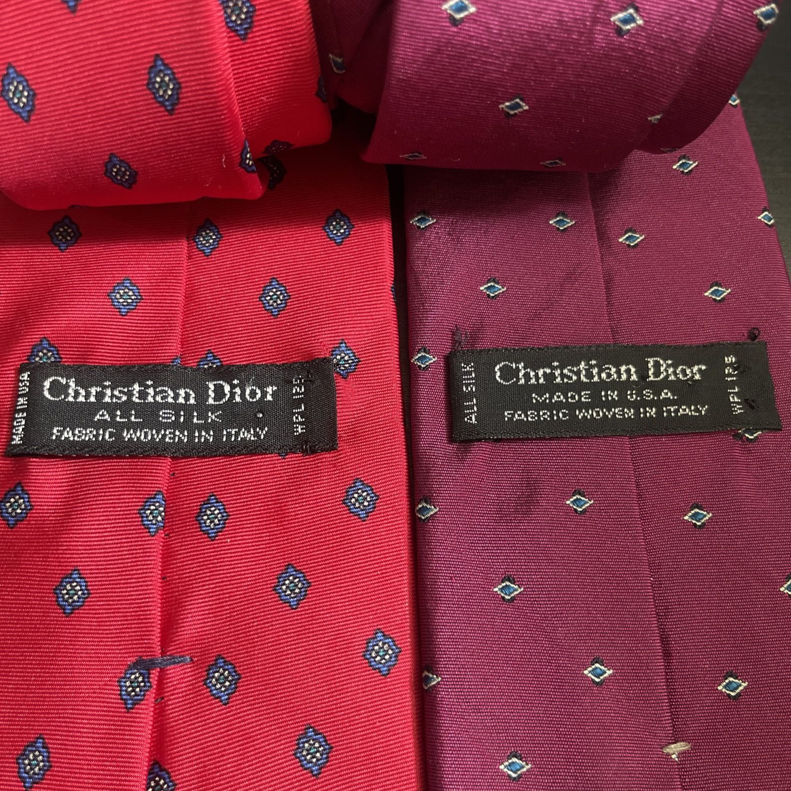 Lot Of 2 VINTAGE CHRISTIAN DIOR Ties 100% Silk Mens Necktie Made In Italy