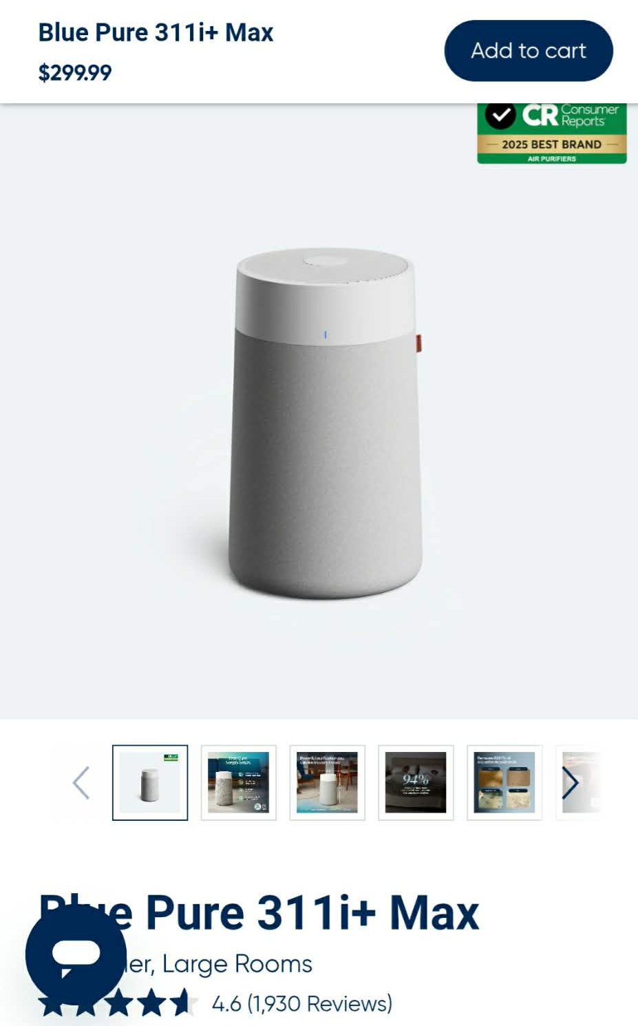 Blue Pure 311i+ Max is designed with sensitive groups in mind. Equipped with advanced HEPASilent Dual filtration technology that removes airborne allergens, dust, and asthma triggers. Quickly cleans 525 ft² in 12.5 minutes, 1,260 ft² in 30 minutes, & 2,520 ft² in 1 hour. Automatically detects and quickly removes pollutants such as dander, pollen, dust mite matter allergen. Compact with 360-degree air intake, so you can place it anywhere RealTrack Technology accurately tracks filter lifetime based on usage and pollutant levels. Variety of washable pre-filter colors designed to blend seamlessly in your home
