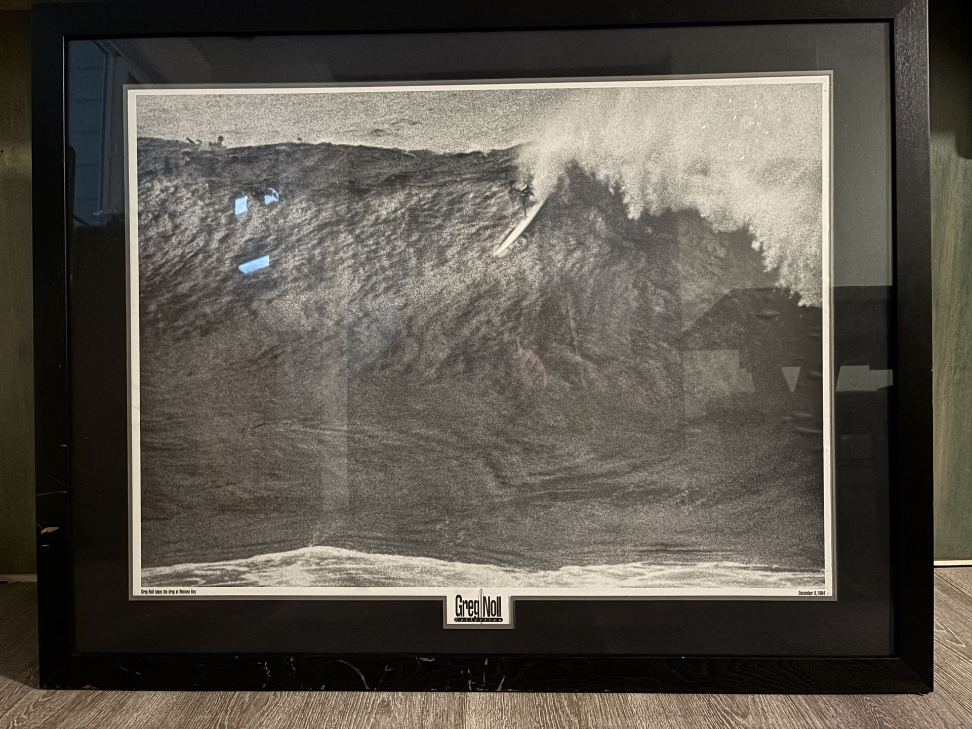 Greg Noll Collection: Greg Noll takes the drop at Waimea Bay Frame is scuffed up a bit. Can be repaired fairly easy with black paint.