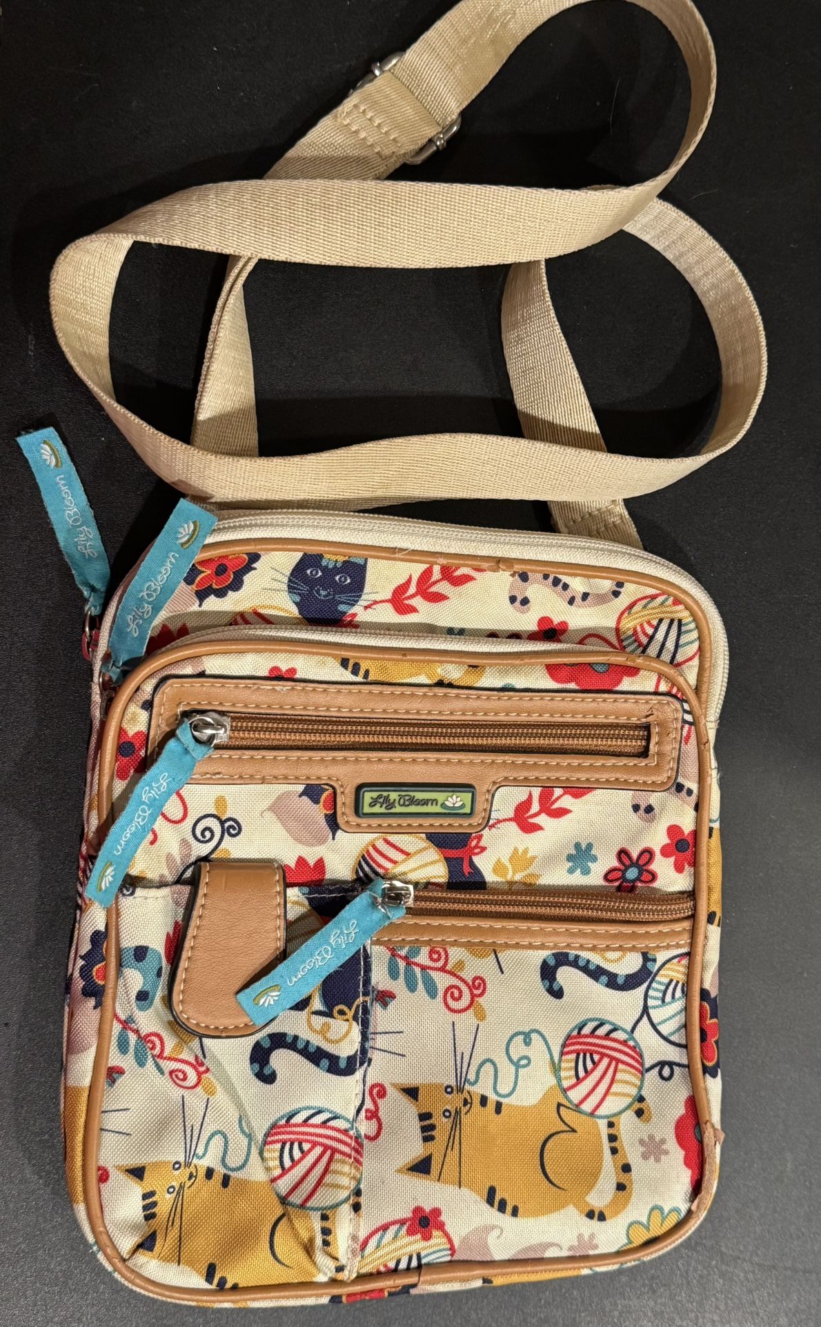 Womens LILY BLOOM Crossbody Cat Bag Purse. In good condition , with a few scuffs to the piping. Clean inner linings! Made from faux leather, polyester