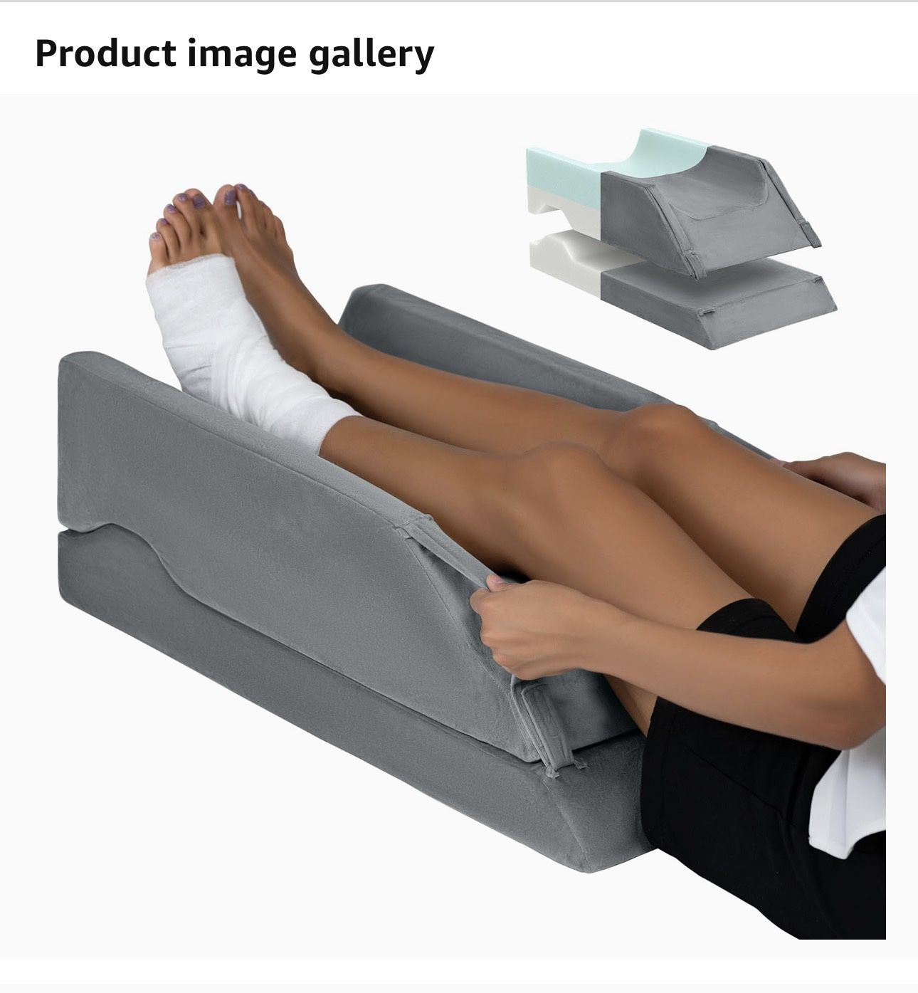 LightEase Adjustable Leg Elevating Pillow Barely used. -It fits one or two legs with two different height adjustments. Nice quality. -Purchased from Amazon for $50 and return window closed so it’s been in the closet and not needed.