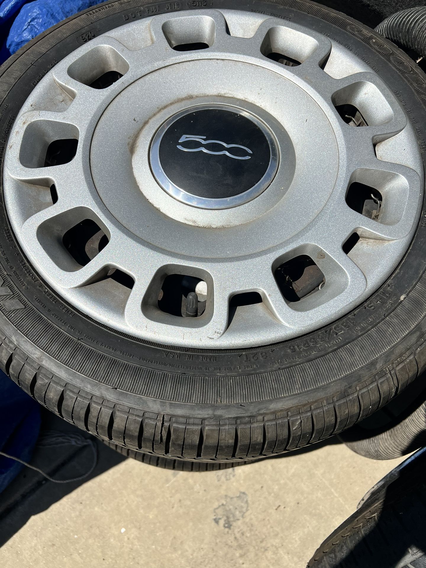 Fiat 500 wheels and tires in good condition. Tires are Goodyear 185/55 R15. $300