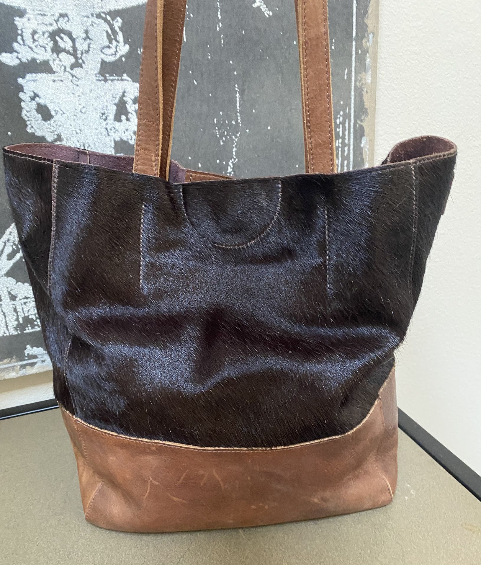 Brave Saloso tote bag in excellent condition. This bag has only been used a handful of times. The bag has a leather base with a hair-on hide leather top. The color of the “hair” is a rich, deep sable color that shines in light. See photos for dimensions.