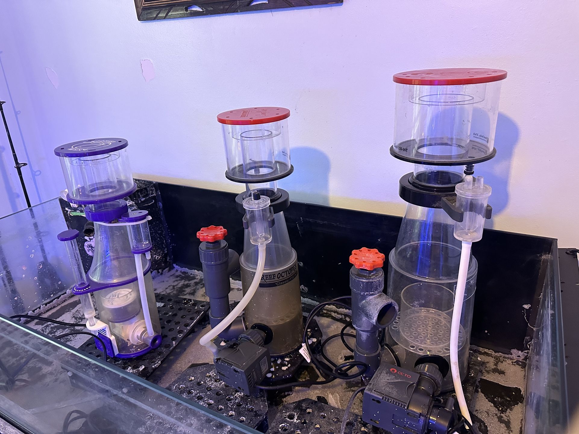 3 protein skimmers all in good working condition (1) reef octopus classic-110 $140 (1) reef octopus classic -150 $140 (1) eshopps axium with internal pump $100