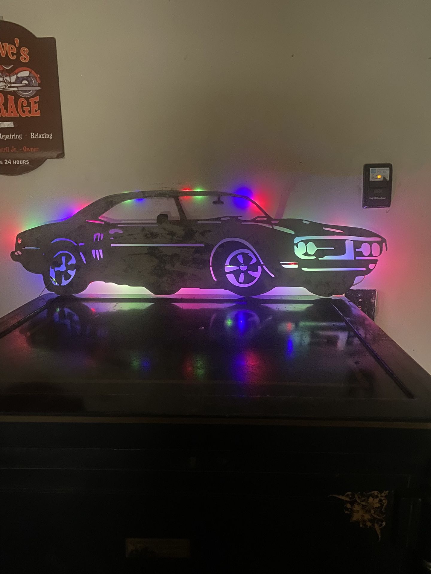 Galvanised Wall Art With Colour Lights