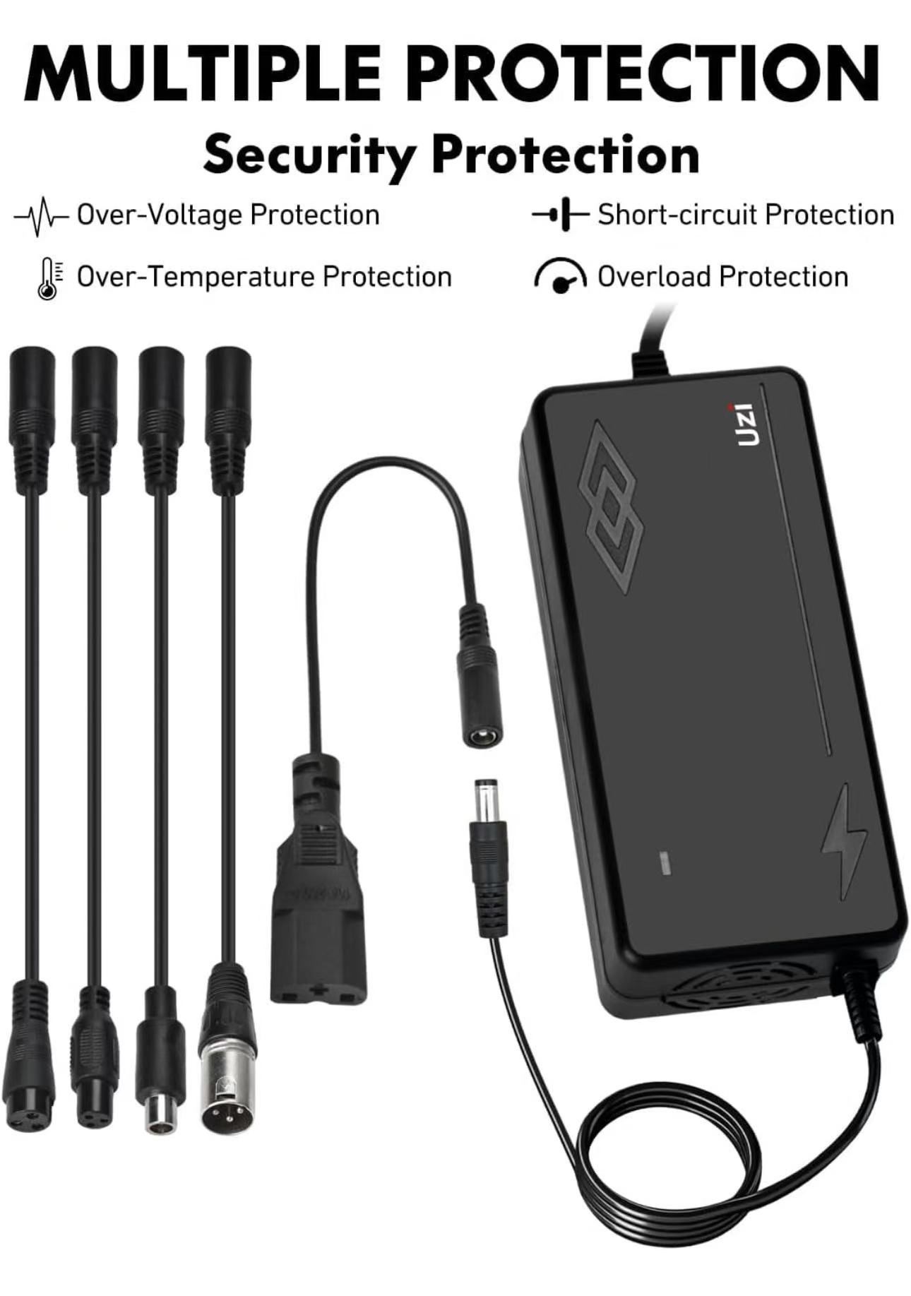 Uzi 54.6V 2A Charger (with Multiple Output Heads) for Fast and Safe Charging of Your 48V Li-ion Battery-Compatible with Ebike/Electric Scooter (Built-