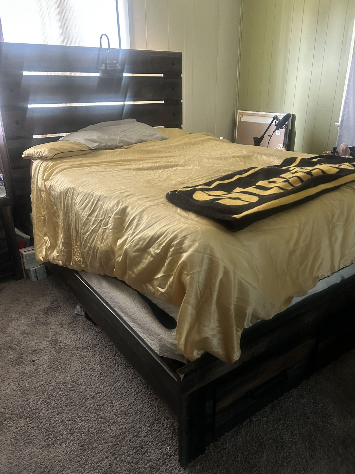 Full Size Bed Frame Headboard with Lamp