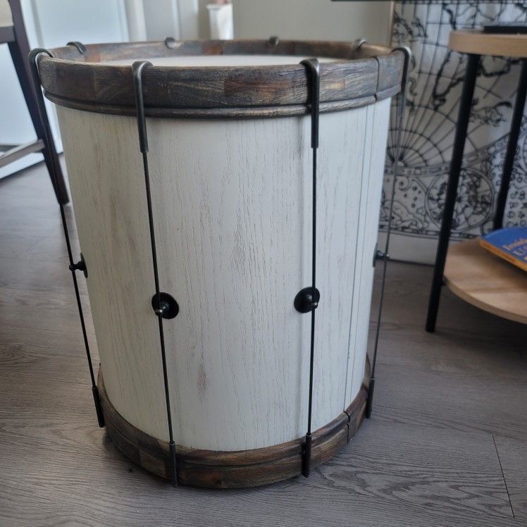 Wooden Drum End Table with storage Rustic Style Used: Good Condition Solid Wood Dimensions are 18.5"D and 22"H