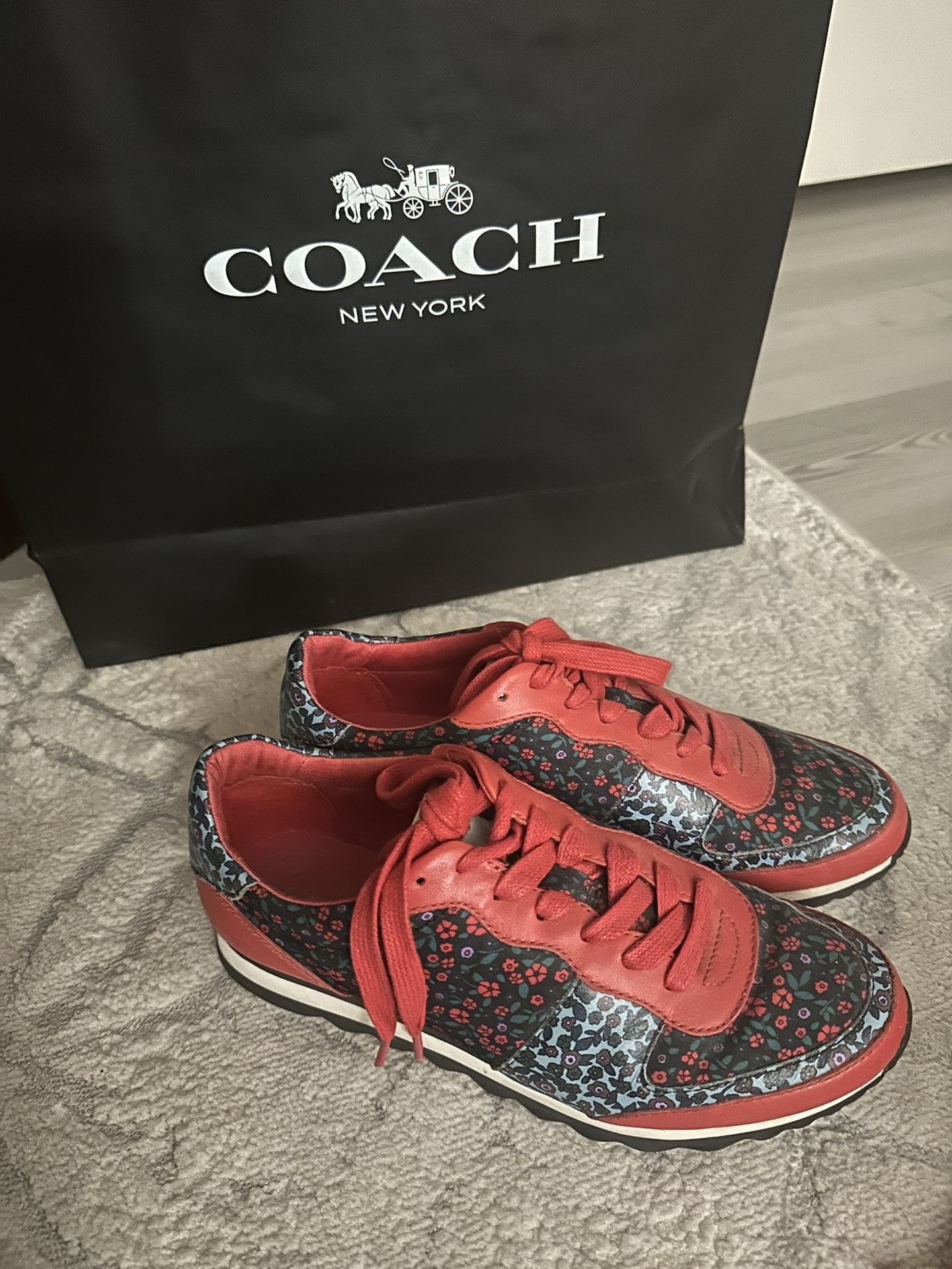 Coach C121 Runner Red and Blue Flower Tennis Shoes 9B Style FG1258 new never used size 8