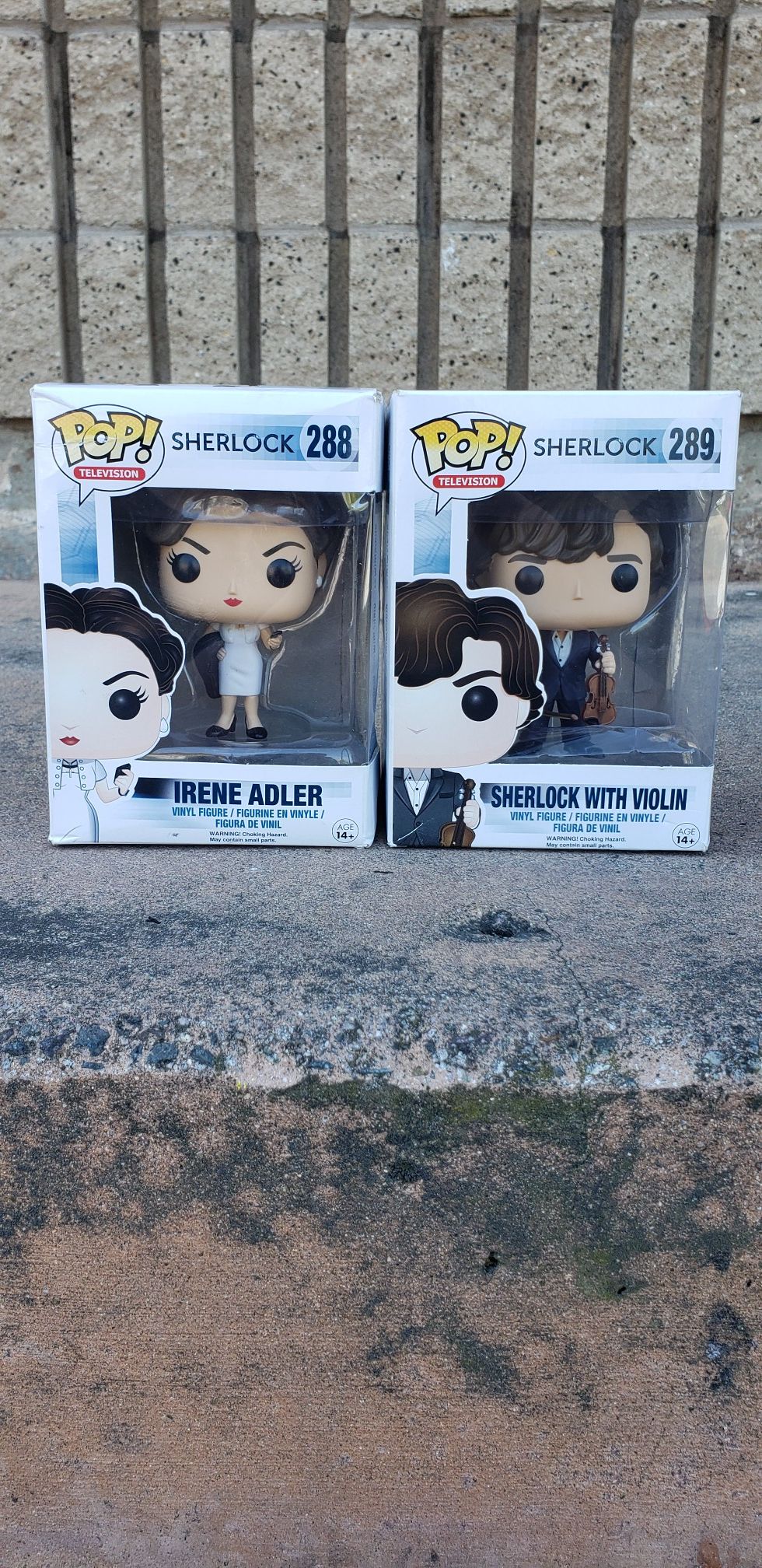 Irene box is a little scuffed up but it still in good condition and sherlock with violin is in good condition