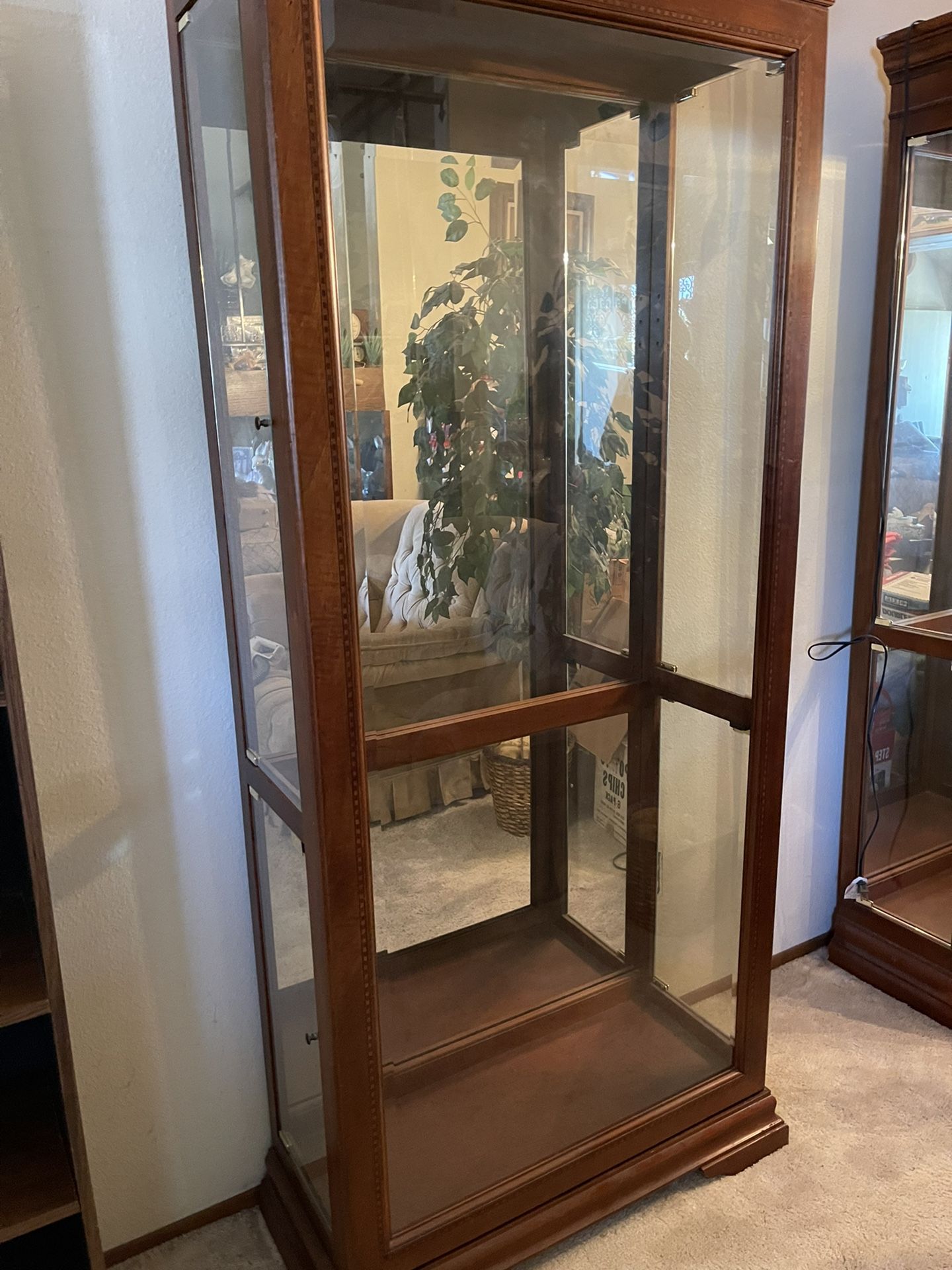 Set Of Two Matching Curio Cabinets With Glass Shelves