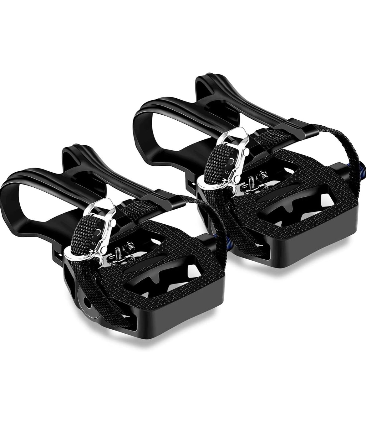 DUCKKOKO SPD Spin Bike Pedals for Exercise,9/16'' Indoor Cycling Hybrid Pedals with Clips In,Exercise Bike Pedals with Toe Clips and Straps,Toe Cages for Peloton Bike Spinning Bike Accessories for Gym