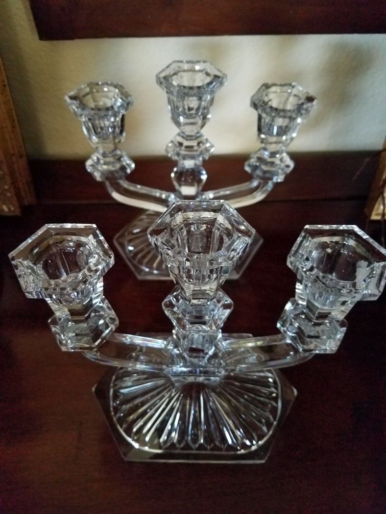 2 crystal candle holders