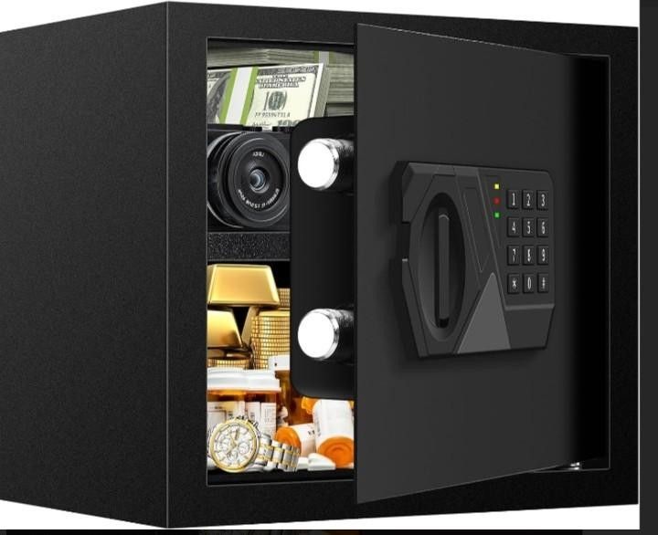 Brand new in box. Never used. It is fire and water proof safe. Super nice security safe. Can fit all your valuables including a tablet, gunn and rxs.. Comes with batteries. Comes with and combo code (you can program your own code). Plus a battery back up. Dual Alarms. 15 kg which is 25 pounds. It measures inches 11.8 inches high by 12.2 inches deep and 14.7 inches wide This super sturdy safe made from Alloy steel. Has 5 Star rating. 3 Ways to open KEY + code + Battery Back Up It has nice LED indicator. It has an interior LED light. Comes pre-drilled holes on back and bottom for mounting screws that are included. Serious inquires. Cash only on pick up no scams or codes. $249 Smoke and bug free home. Conveniently located 45239 off Galbraith across from Clovernook Country Club. Inventory control PPE(contact info removed)J10JAN1926