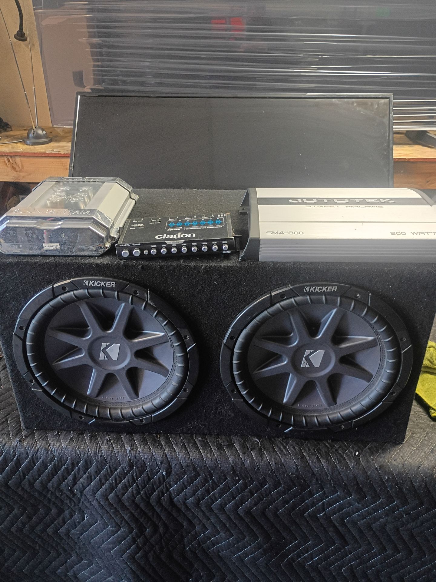 12 inch kickers subwoofer double coil capacitor Clarion equalizer 4 channel amplifier for more information message me hablo Espanol