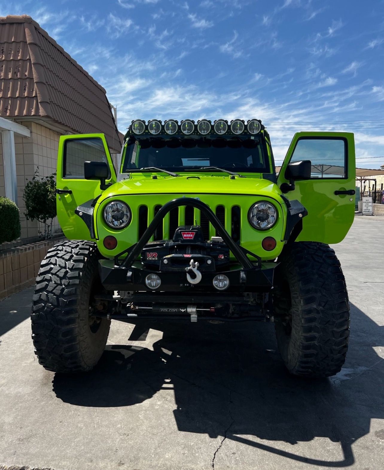 2013 year Falcon shocks Falcon Stabilizer 6 inch lift TERAFLEX TERAFLEX Alpine IR long arm kit 40 inch tires (STT Cooper) Race line rims B Locks Warn wench 8s ICON bumper with KC lights (front ) ICON bumper (Rear) KC head lights KC round bar light on top Dual exhaust system Automatic step bar JBL Sound system Pioneer touch screen Alarm system Remote to start key DV8 fenders