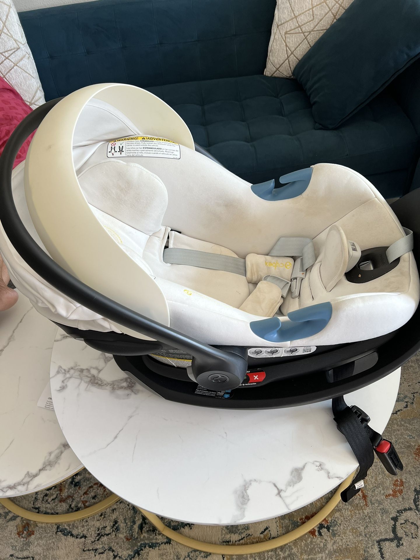 White Infant Car Seat With Safety Harness Cybex Aton G Swivel Base Exp. Date 05-2029