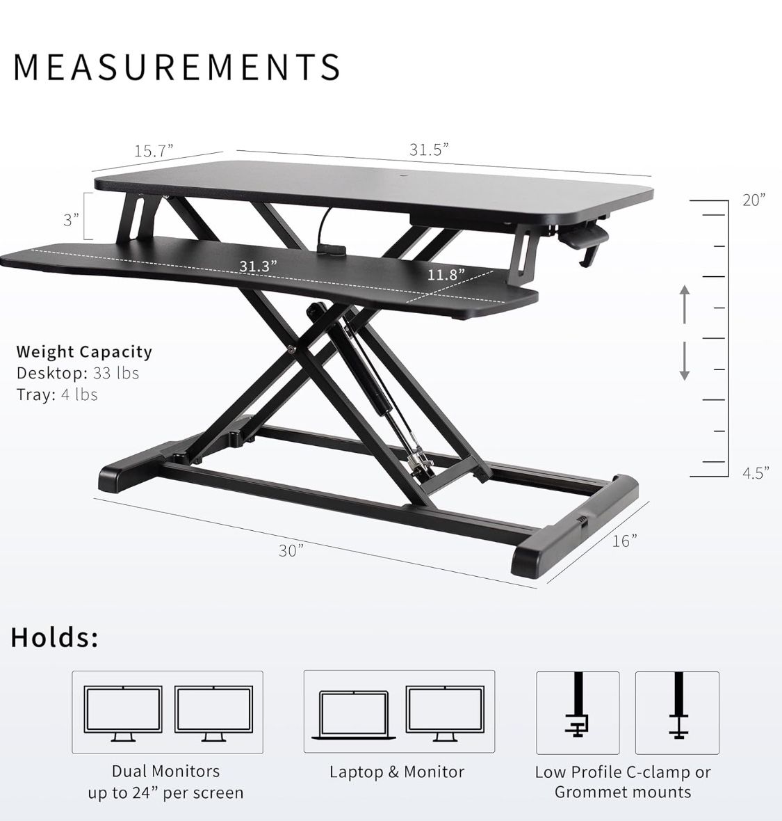 VIVO 32 inch Desk Converter, Height Adjustable Sit to Stand Riser in Black