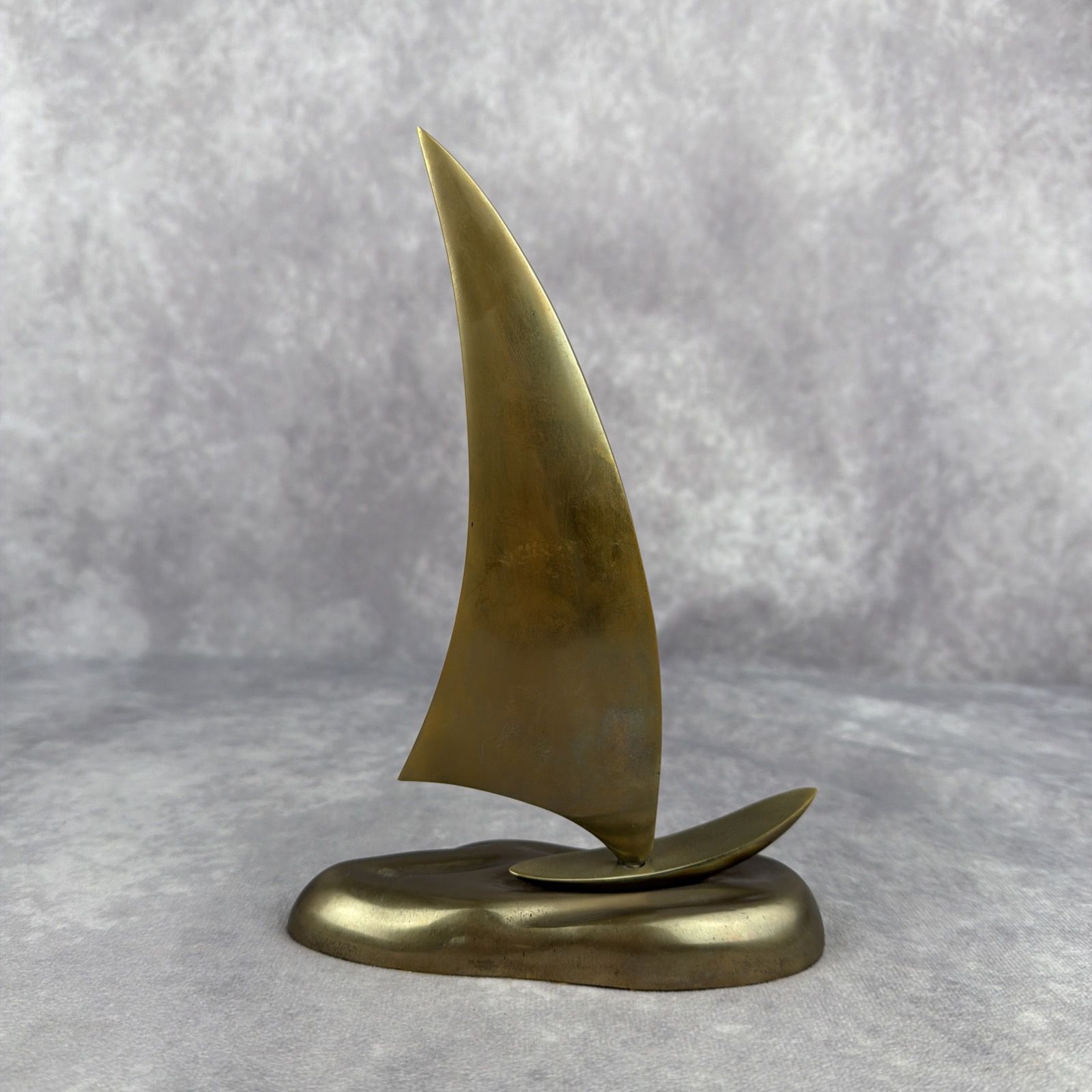 Vintage Mid Century Modern Solid Brass Sailboat Sculpture Nautical Decor