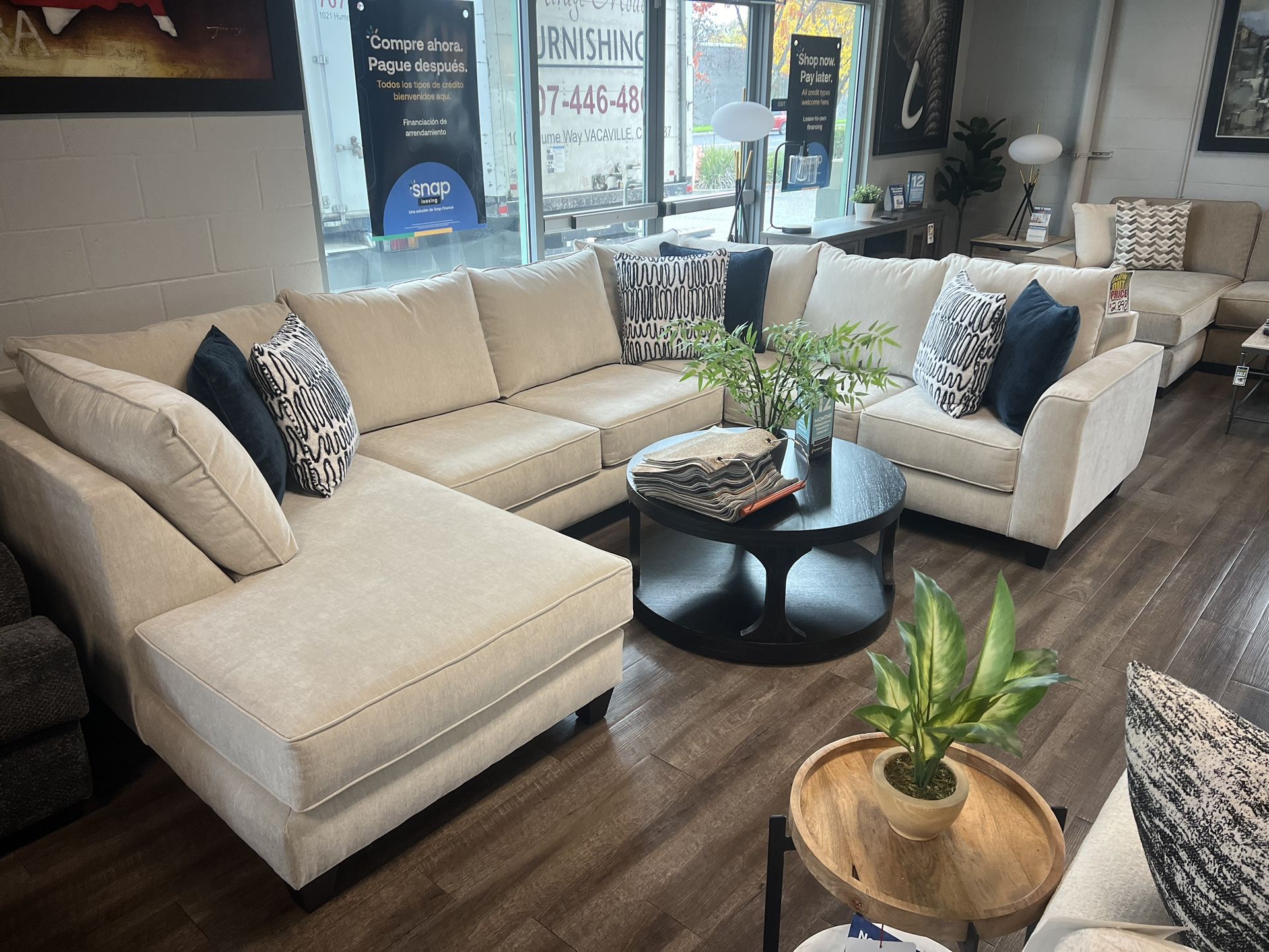 139” x 96” sectional American made piece Awesome quality Come check it out at: Mirage Modern Furnishings 1021 Hume Way Vacaville Open everyday 11-6:00