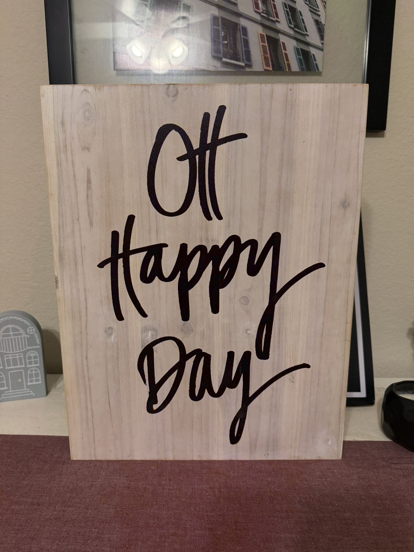 Oh Happy Day wall decor, has a sawtooth hanger on the back, approximately 14” x 18”. Used in an office, in like new condition.