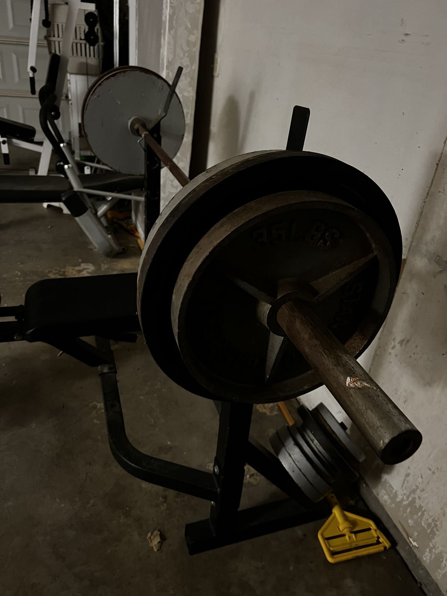 Olympic weight and a sit up bench $350 for everything 300lb plus Olympic bar Need gone