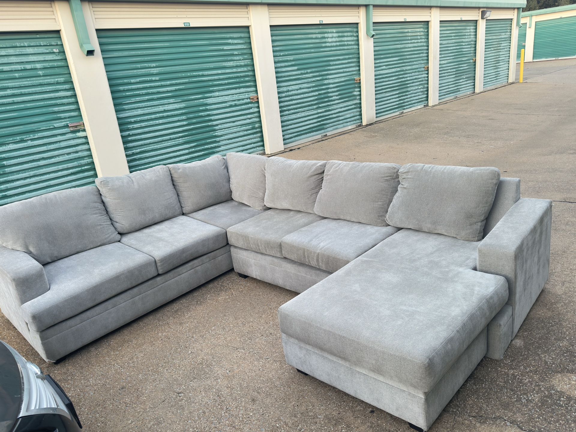 I’m selling this sectional sofa. It’s a gray 2 piece u-shaped sectional with right arm facing sofa chaise.