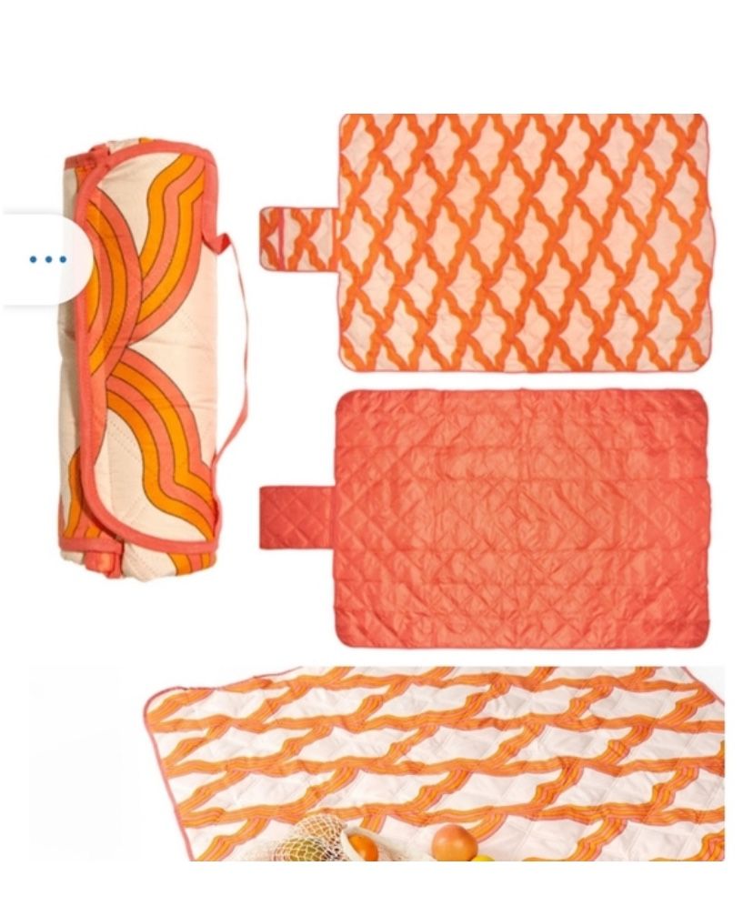 BRAND NEW super cute picnic blanket in original packaging! Great for a daytime date, outdoor movie, picnic in the park, or day at the beach! This easy-to-carry blanket is water-resistant, making it perfect for your outdoor picnics. INCLUDES Carrying harness DIMENSIONS 50" x 70" MATERIALS 100% polyester