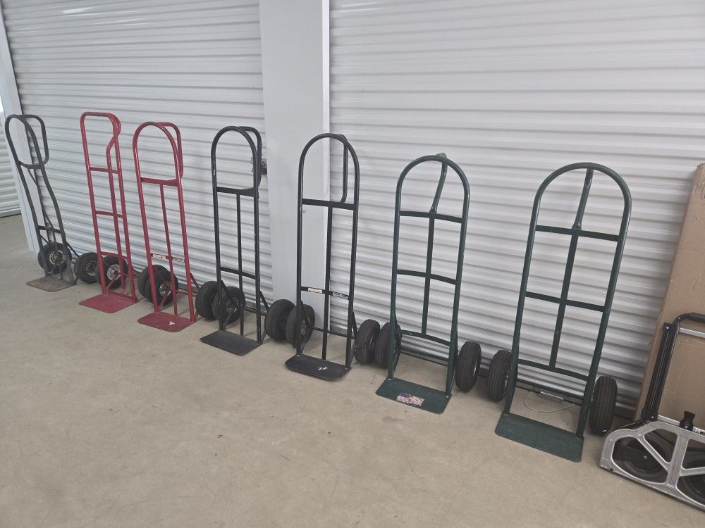 Great dollies for moving goods and for those with businesses and need to move multiple items. Two four wheel dolly, one collapsible hand cart, wrapping paper and saran wrap. Boxes are no longer available.