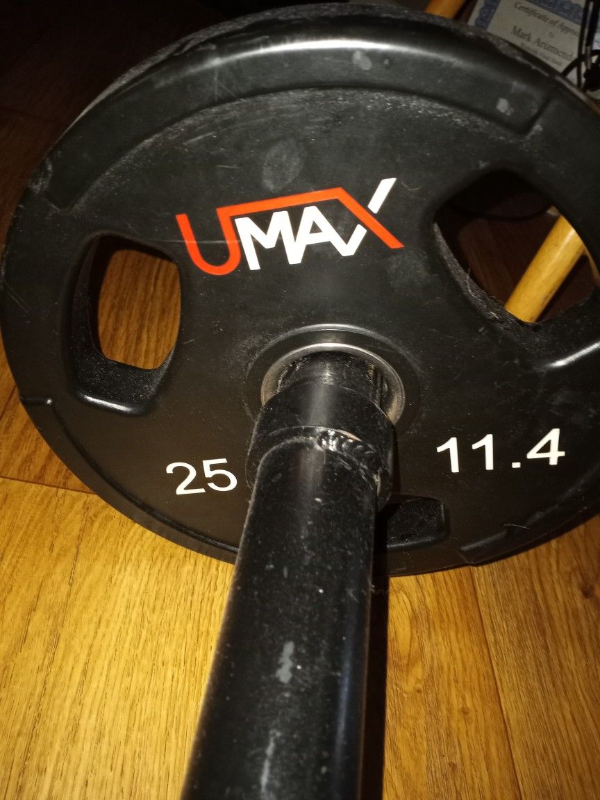 Olympic style weights with Monster Curl Bar with spinning rotating handles for gripping strength