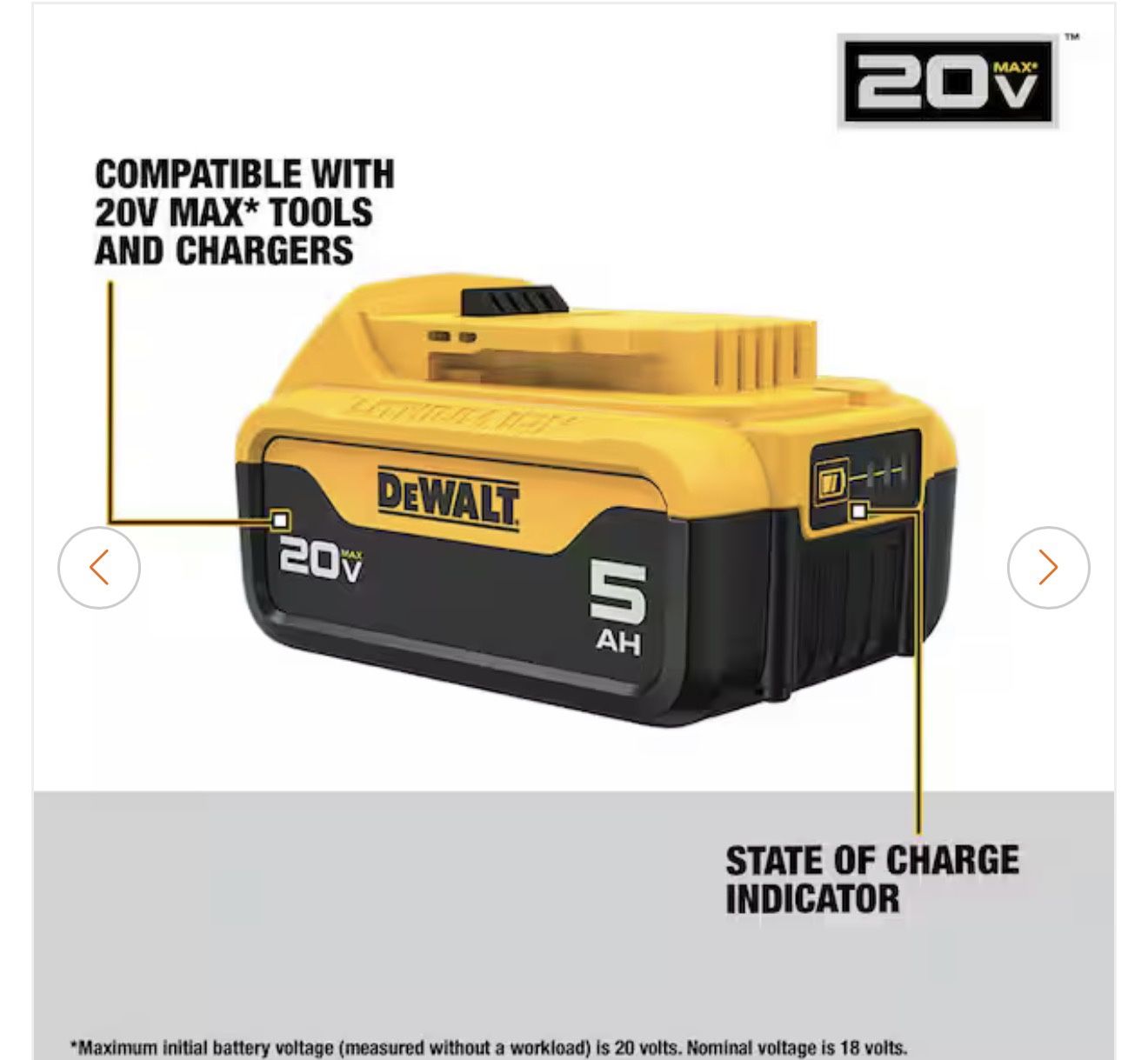 Brand New Dewalt 20V MAX Premium Lithium-Ion 5.0Ah Battery Pack