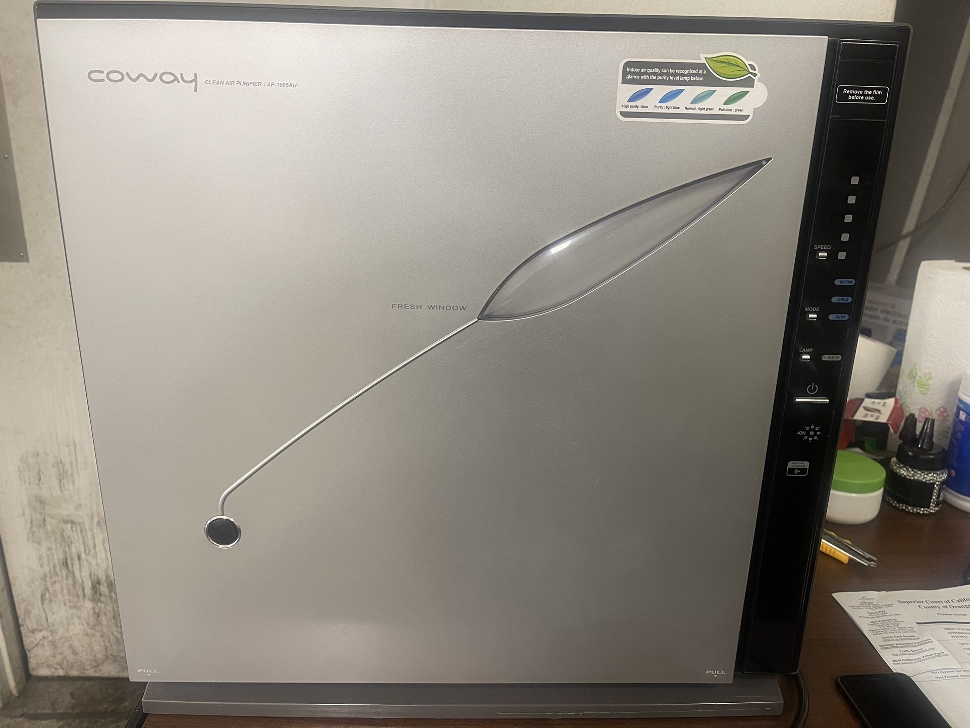 Wild fire season you must have check this ! Barely use Retail 600+ I wiped it clean , works well Best for poor LA wild fires season and poor air quality Anion Generator : Produces negative ion and makes feel much freasher. Child Mode : Finds and delivers the proper temperature of the air for children. 4-step Rhythmic Cleaning Mode : Airflow is changed dynamically over four steps to deliver fresh air to all parts of a room. Five stage Filtration : Removes and destroys 99.95% of airborne particles. Can choose from a variety of custom filters that will benefit you the most.