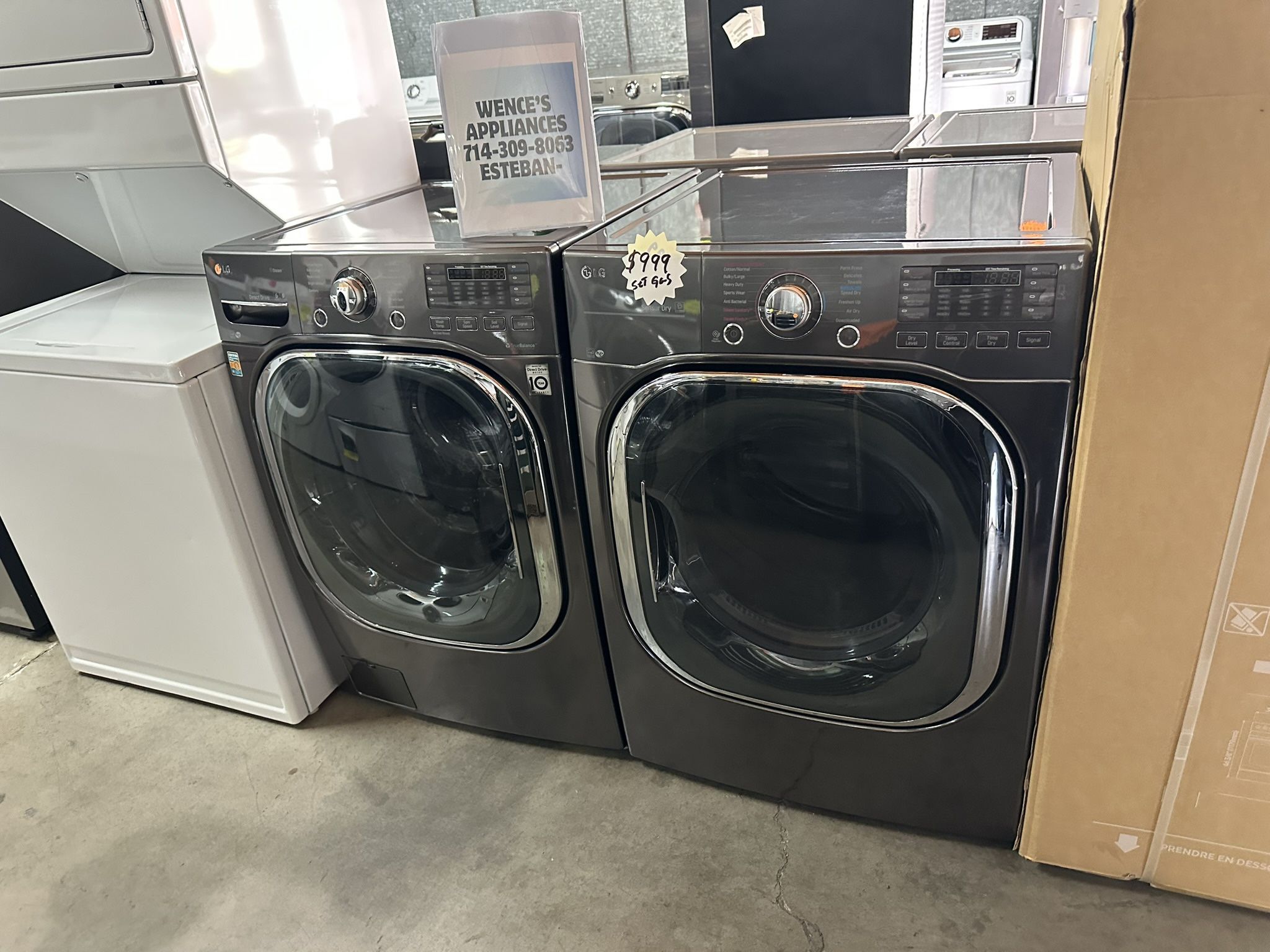 Black stainless steel lg front load washer and gas dryer stackable or side by side in excellent working condition with 4 months warranty delivery available.