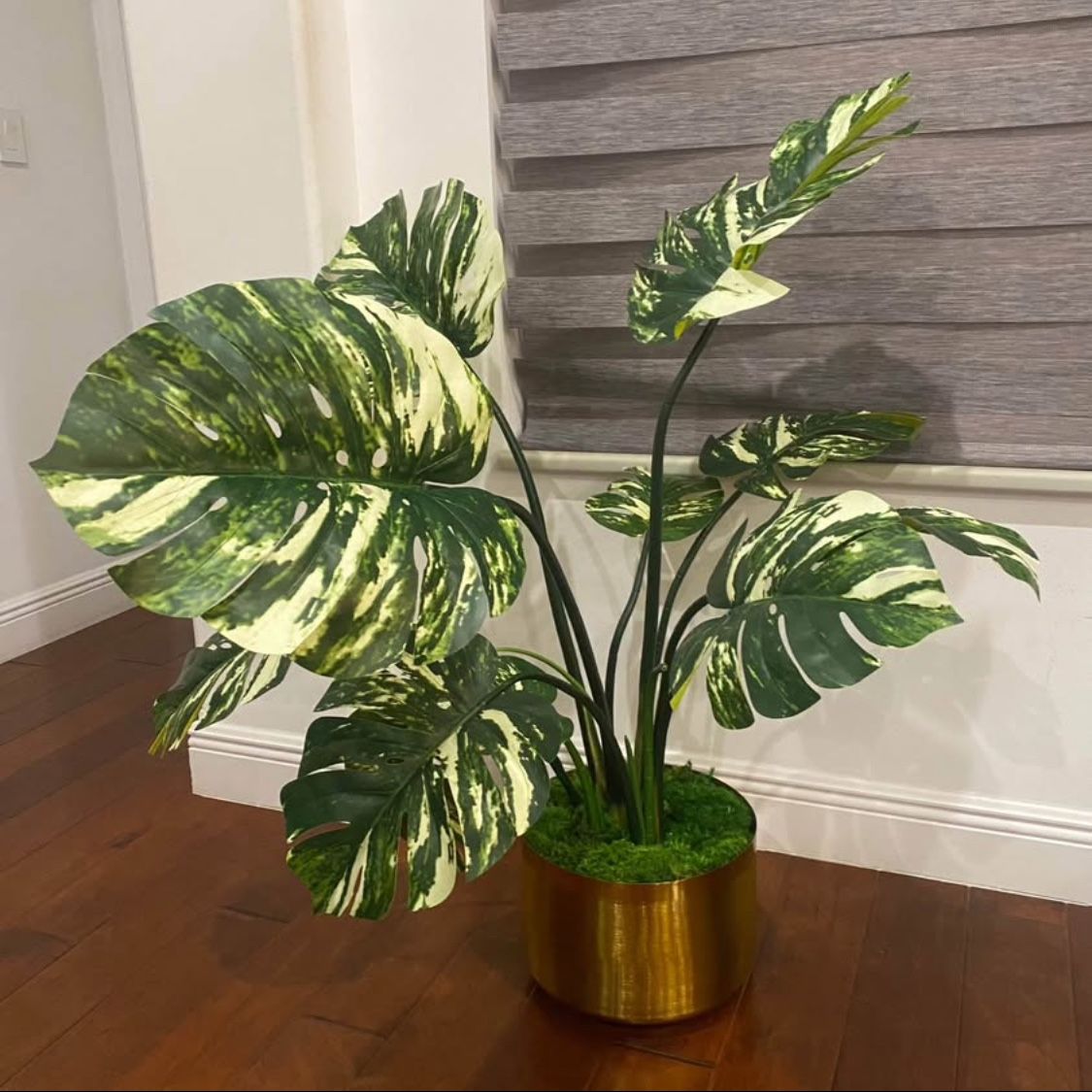 Faux Variegated Monstera Deliciosa Plant – 44” Realistic Artificial Tropical Palm Tree Bring tropical vibes to your space with this beautiful realistic artificial variegated Monstera Deliciosa plant. Standing 44 inches tall, it’s a perfect low-maintenance addition to any home or office decor. The realistic leaves and vibrant green tones create a lush, modern look. • Excellent condition • Comes in a small black plastic pot. I can throw in the brass pot and moss but it needs to be put back together. A great way to add greenery without the upkeep! Smoke/pet free home. Local pickup in Cooper City. Cash only please.