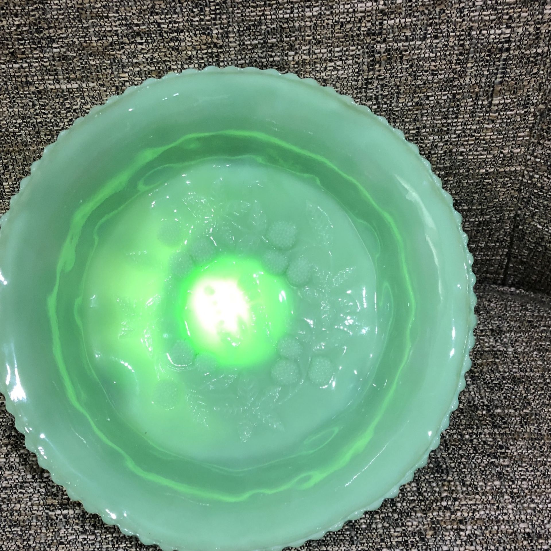 Used Excellent Condition Like New Vintage Green Milk Glass Jadite 3 Footed Bowl For More Information See All Pictures Payment cash only Don’t hold Don’t deliver
