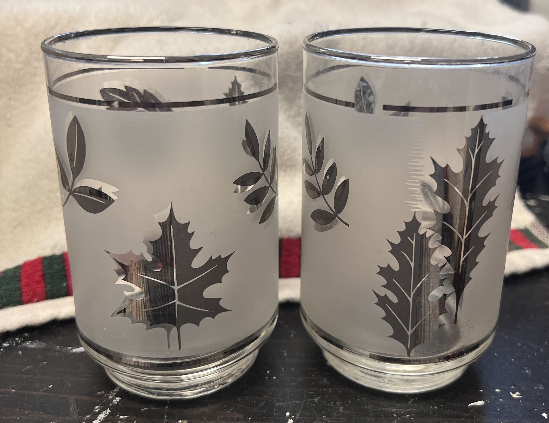 Set of 2 vintage silver foliage 4.5-inch tumbler glasses by Libbey