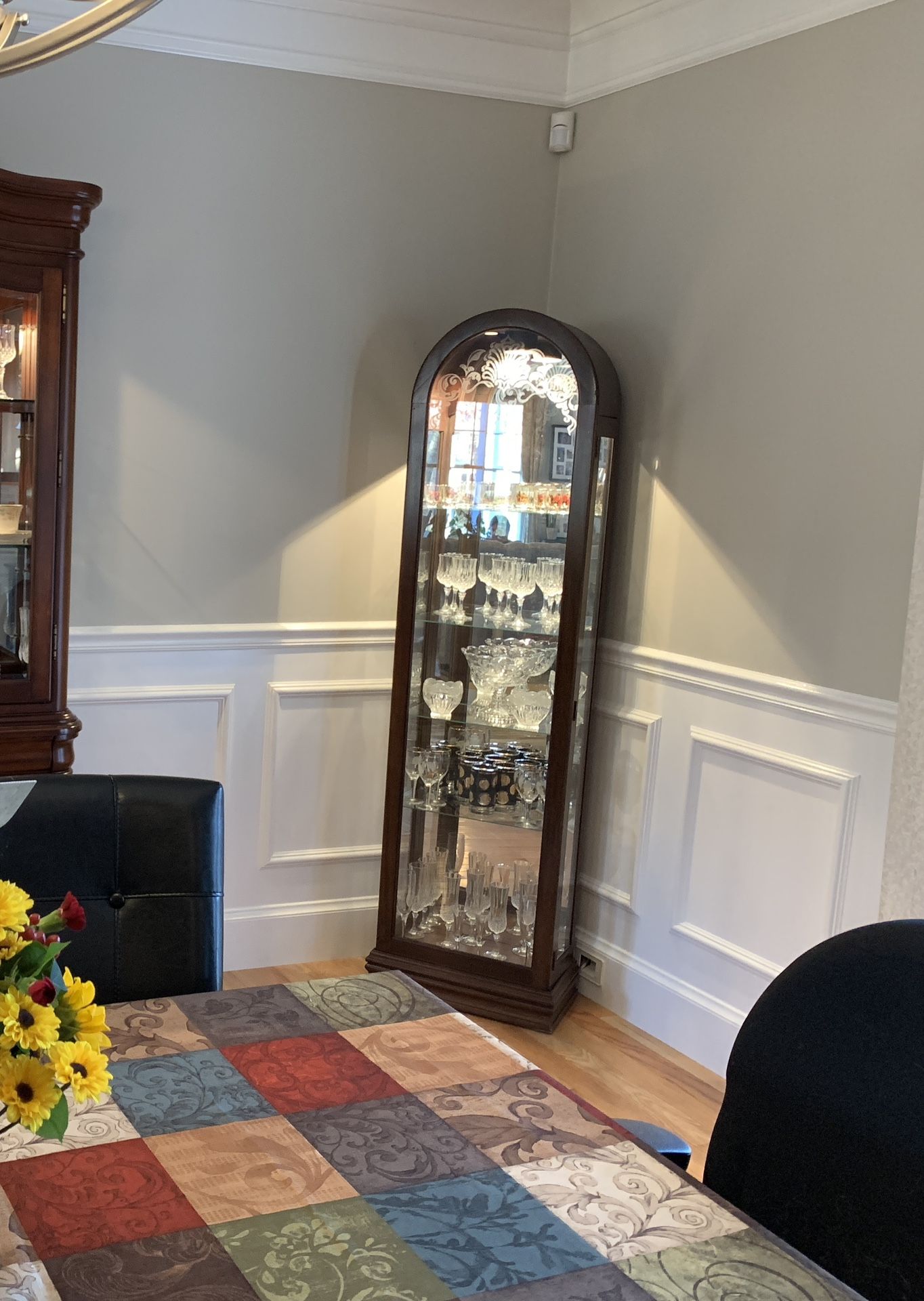 glass disply curio cabinet, wooden fram 18,3/8” x 11” x 72”