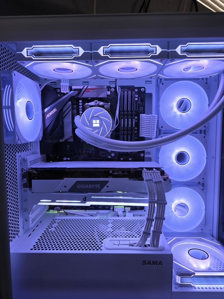 Selling a fully custom built gaming and streaming pc. Ready to plug and play! Pc specs: Ryzen 7 3800x 8 core 16 thread cpu Rtx 2070 super 8gb graphics card 32gb 3200mhz ddr4 ram 1tb nvme m.2 ssd B450 aorus pro wifi motherboard Uphere anti sag bracket 750w 80+ bronze power supply 4 pack asiahorse infinity mirror case fans Asiahorse white cable extensions Sama atx temper glass pc case Pc has been cleaned with fresh thermal paste on the cpu and graphics card. All drivers and updates installed on the pc. Fully ready to just plug and play! Price is $860 No trades of any kind Not parting out Thanks for looking! :)