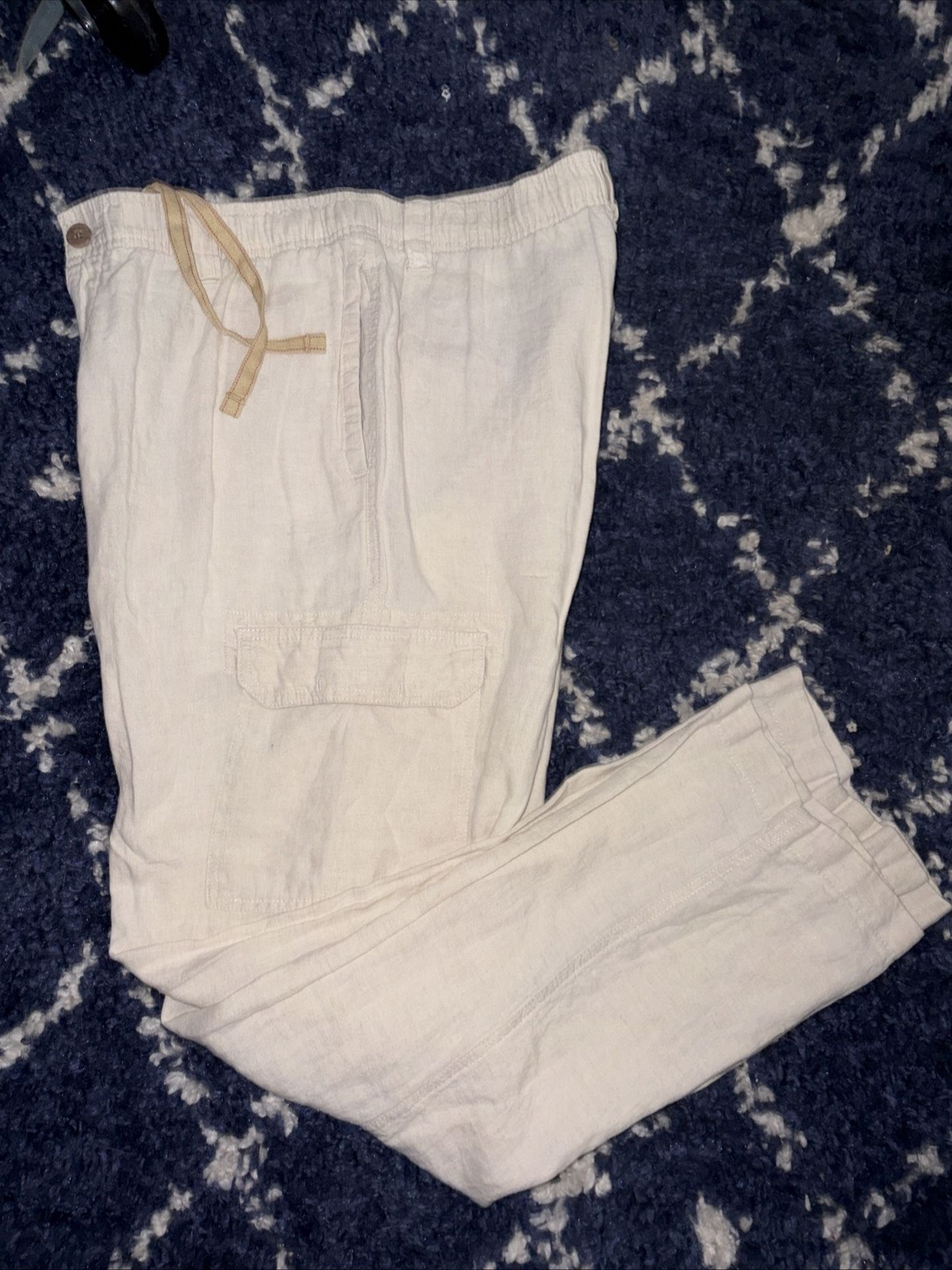 Caribbean cargo mens Linen Pants beige 36x30 Casual vacation beach Y2K