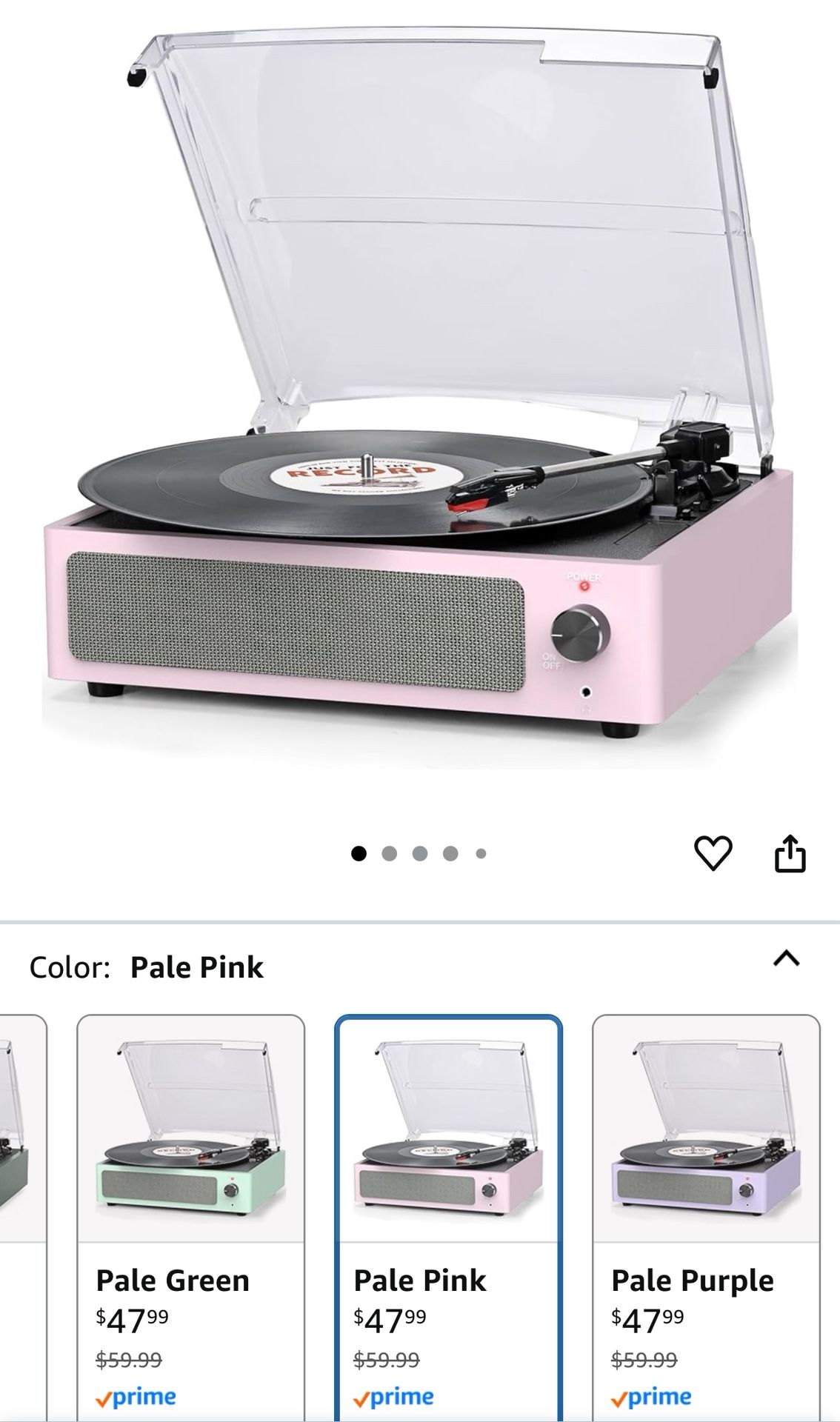 Retail: $48 NEW SLEEK & PINK LP PLAYER - New sleek but old school style, easy to use for beginner, simple setup and operation. Great ideal for vinyl lovers. Three-speed Turntable (33, 45, 78 RPM) plays all of your 7" 10" 12" vinyl records. Easily play all your record collections BT WIRELESS TURNTABLE WITH SPEAKERS - Built-in Bluetooth receiver & stereo speakers, not only can play vinyl records to experience the retro-style music and atmosphere, but you can also play all your favorite music at any time via a Wireless connection, playing music from mobile phones or other audio devices BELT-DRIVEN ANTI-VIBRATION SYSTEM - The turntable base is equipped with a spring and belt-driven design to provide shock absorption and improve sound quality. An easily removable dust cover protects your vinyl records from damage. You can shut the cover shields and keep the dust out. And the beautiful textured exterior are a perfect fit for any environment PORTABLE VINYL PLAYER AND VERSATILE - Dynamic full range stereo speaker provide sound for daily leisure listening. Don't worry if you don't have extra speakers. It creates a warm atmosphere when family gatherings. When you are alone, it can help you relax. Even if you don't use it, it can be one of the home's premium decorations. As a gift, it also allows the recipient to feel your heart ALL-IN-1 VINYL RECORD PLAYER - Built in stereo speakers,with Bluetooth wireless technology,elegantly listen to the music from your smart phone.Use Aux cable input to directly play the music. Or enjoy your time with headphone. For better or louder sound, connect external speaker via RCA cable