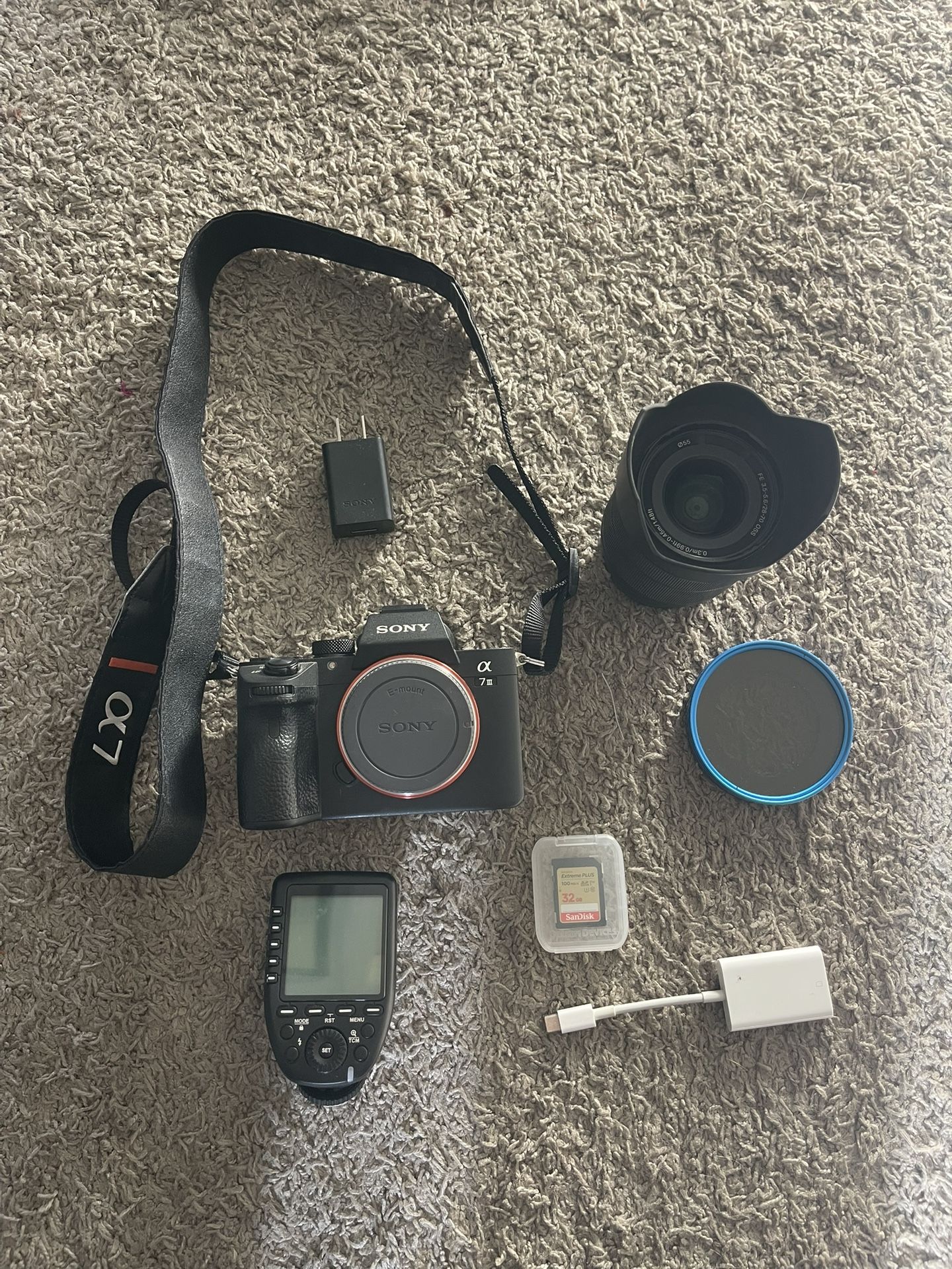 Excellent condition with 4,450 shuttercount Includes: Sony FE 28-70 lens Godox ad200 pro Godox case with accessories Godox xpro trigger ND filter Original Sony charger box SD card 32 gb Apple sd card to usb-c adapter