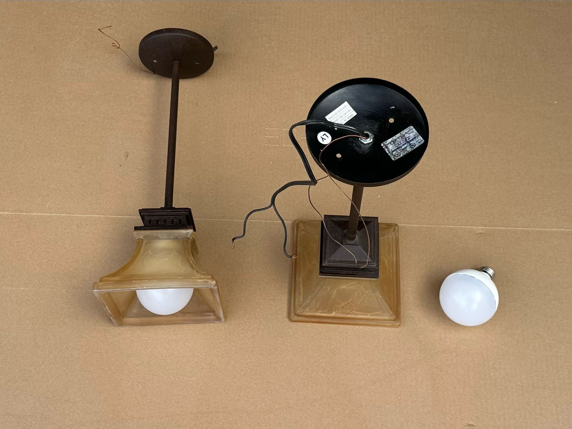 18 inch long hanging lamps set a two in perfect condition, oil rubbed bronze. asking $20 or best offer