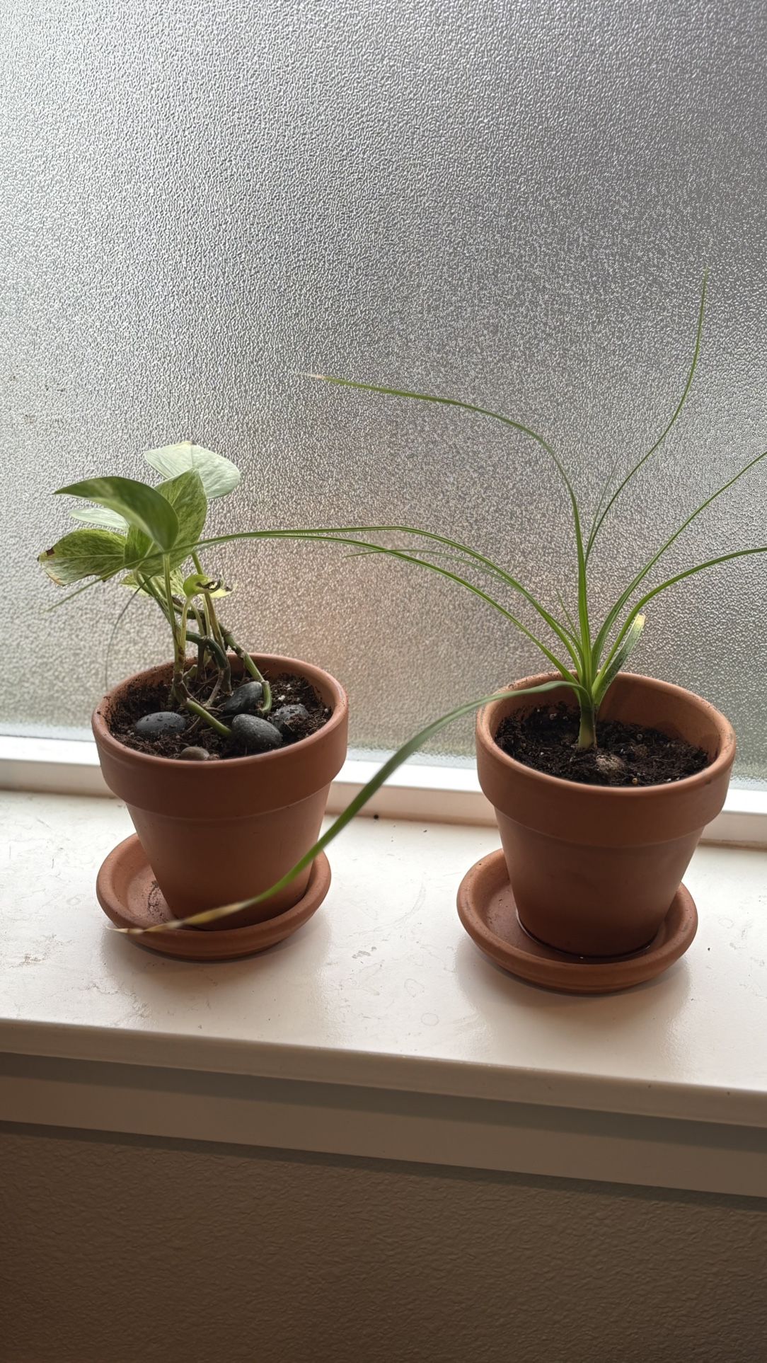 Plants that radiate a boho vibe Comes in terracota pots wirh saucer Mix of marble and regular pothos Ponytail palm 6$ each or both for 10