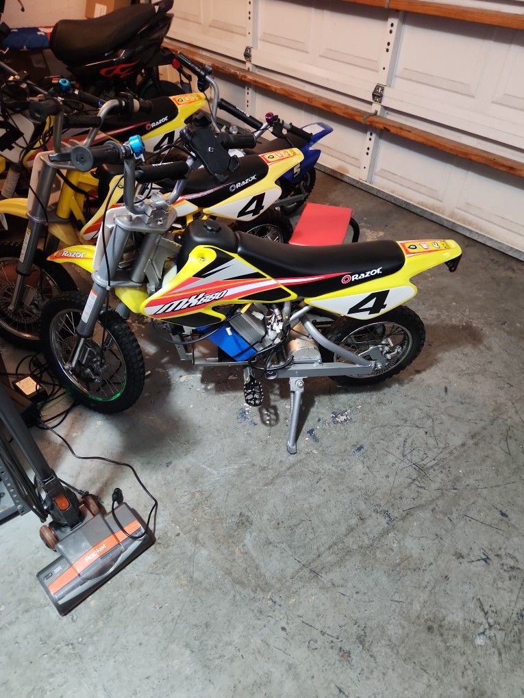 Selling Razor dirtbikes. This one is fully upgraded with a brand new 72volt, 20ah lithium battery. The upgraded motor is 3000 watts. The frame is painted a custom grey. Upgraded Controller, throttle, and foot pegs as well. We did all the work for you! This bike is NOT for beginners. It has 3 speed mode settings and goes over 45mph!!! It has been very well taken care of. Everything works, and it runs great. See my other listings for more upgraded and stock electric dirtbikes and a gas-powered pit bike.
