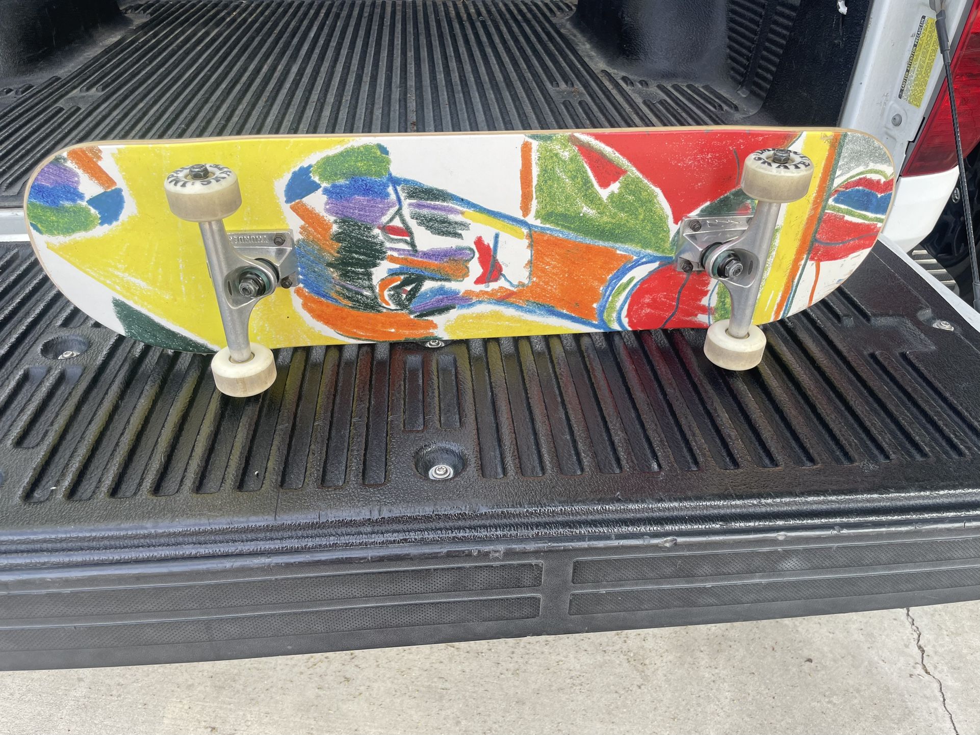 Like new. Only rode a few times. Wheels are good. Bearings are good. Deck is good. Trucks and bushings are good. Grip tape is good. $80