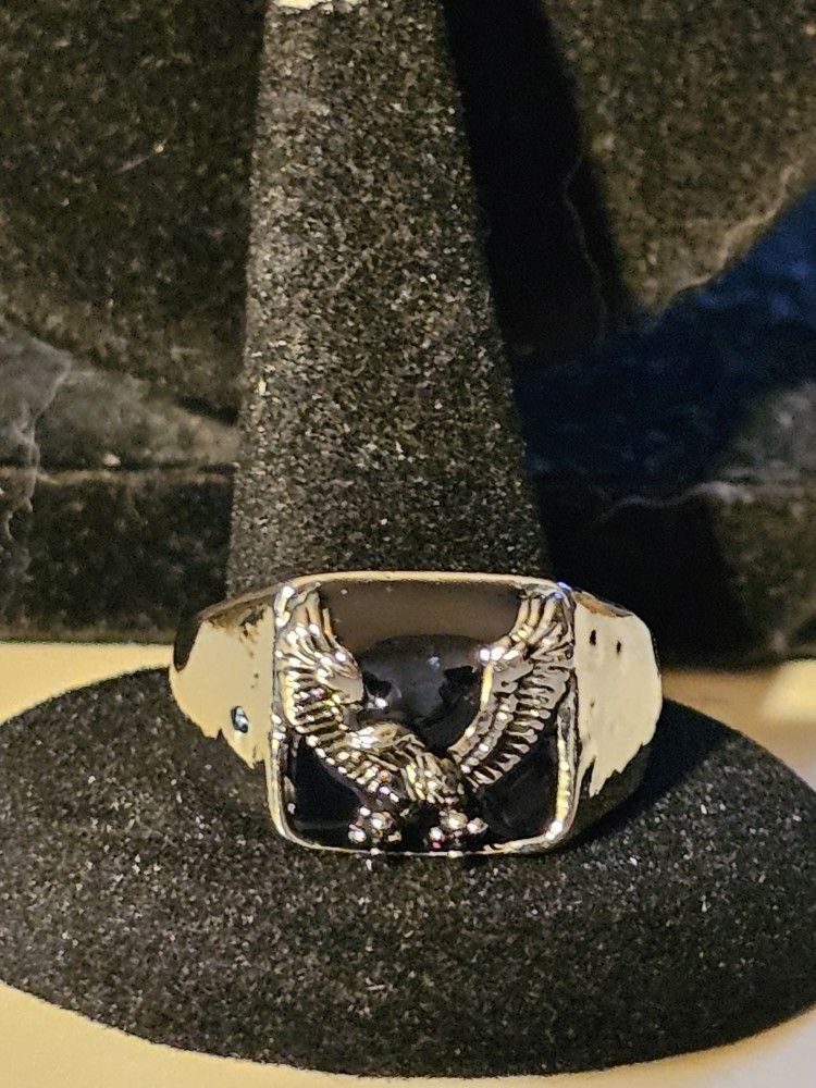 New Silver With Eagle Ring Black Background Size 11